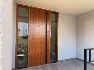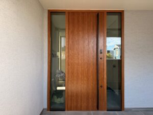 施工事例 両サイドガラスが特徴のチーク玄関ドア 2025.11.07 川崎市 T様邸 シンプルでありながらゴージャスな両サイドガラスが特徴のチーク玄関ドアです。 Precious THD2495V 両袖FIXガラス片開きドア Tweet Share RSS Pin it ドアより大きな袖ガラス付きチーク片開き玄関ドア 前の記事