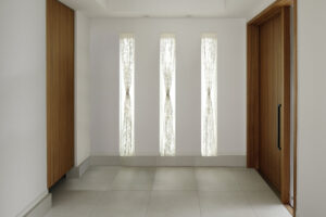 パウダールームとシューズクローゼットに設置されたチーク引戸をより一層際立たせてくれます。